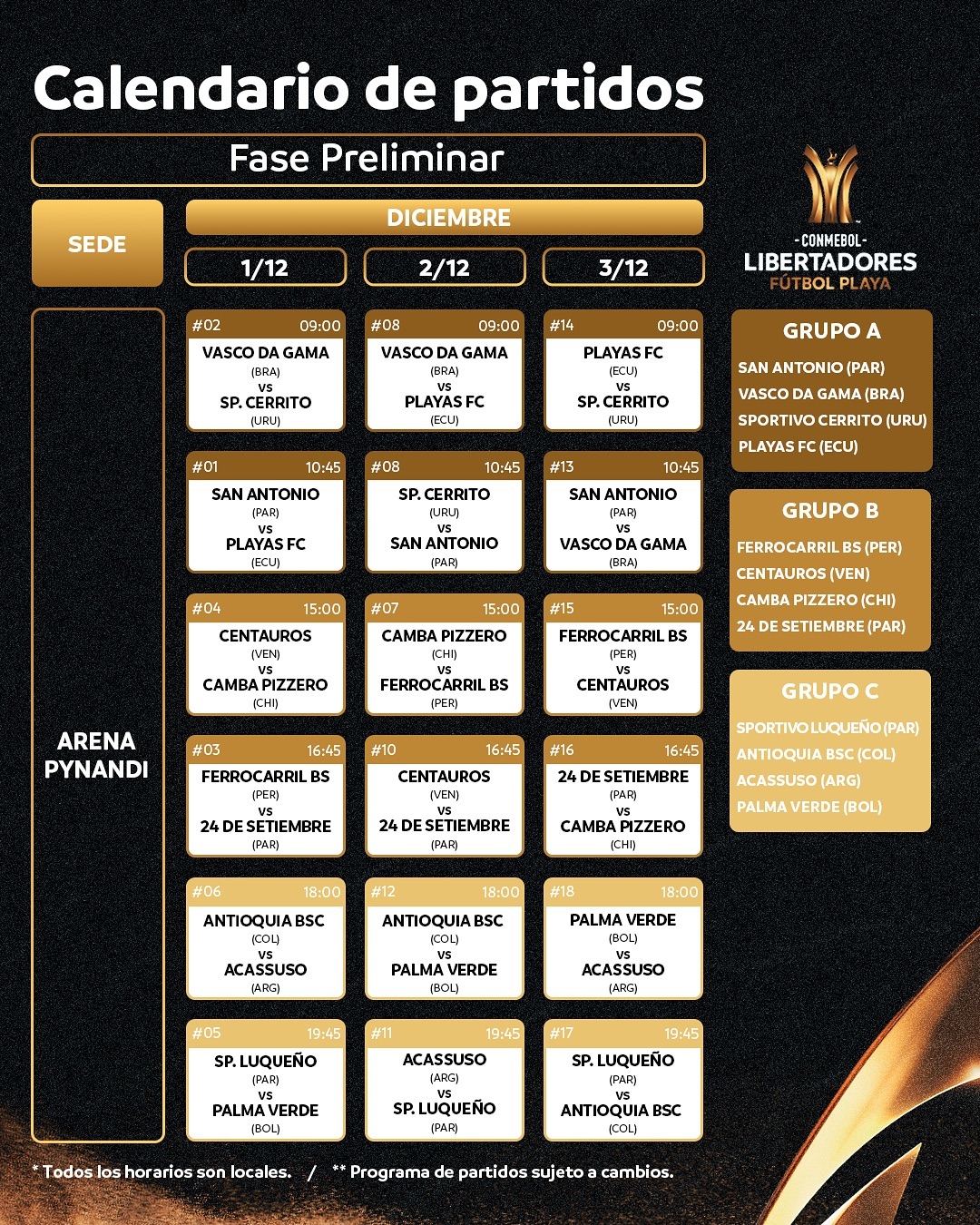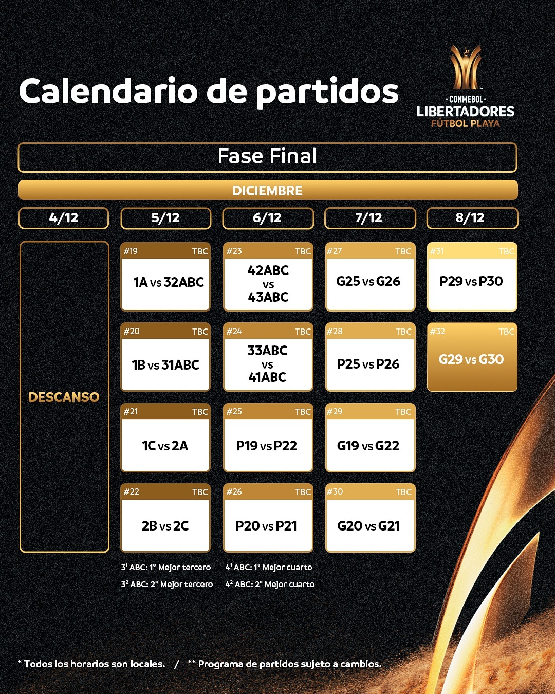 🔝⚽ ¡Para tomar nota! Todos los partidos de la Fase de Grupos de la CONMEBOL #LibertadoresFP.