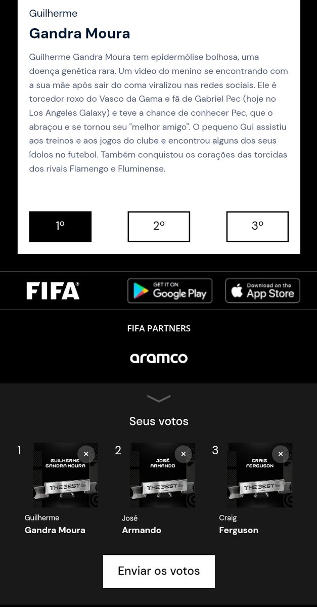 criem a conta no site da FIFA e votem no Gui na 1° posição. (LINK NAS RESPOSTAS DO TWEET)