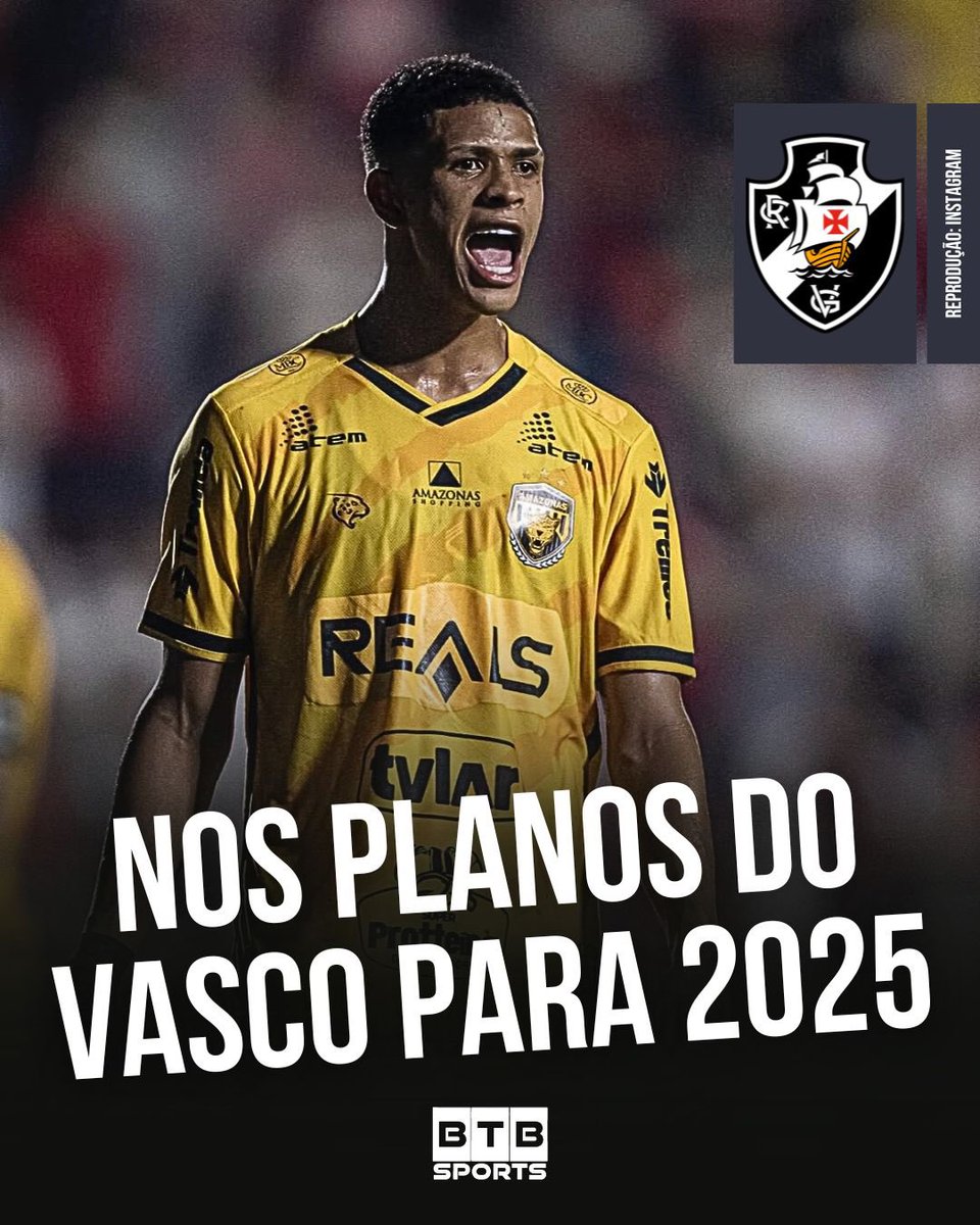 🎙️ | O volante Cauan Barros, que esteve emprestado pelo Vasco ao Amazonas FC em 2024, faz parte dos planos do cruzmaltino para a próxima temporada. O jogador é bem avaliado internamente.