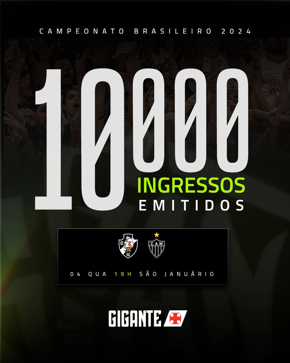 Parcial de ingressos emitidos para VASCO x Atlético-MG 💢