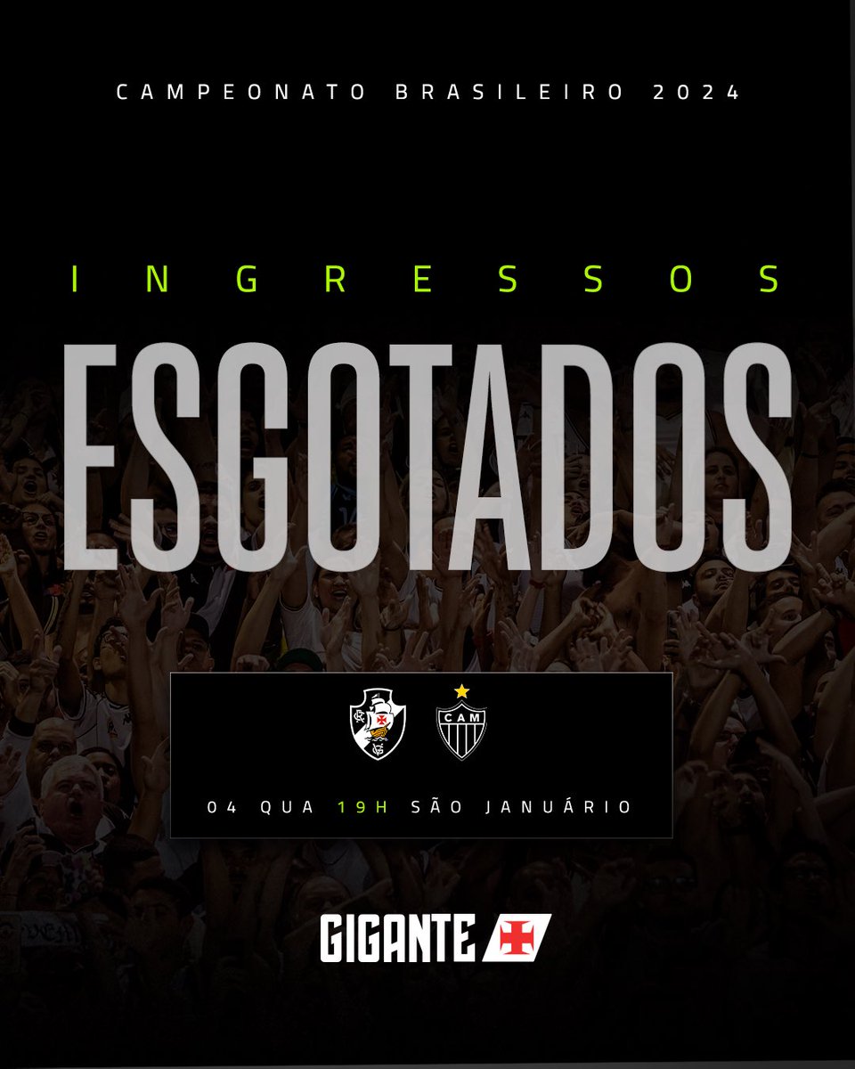 INGRESSOS PARA VASCO X ATLÉTICO-MG ESTÃO ESGOTADOS