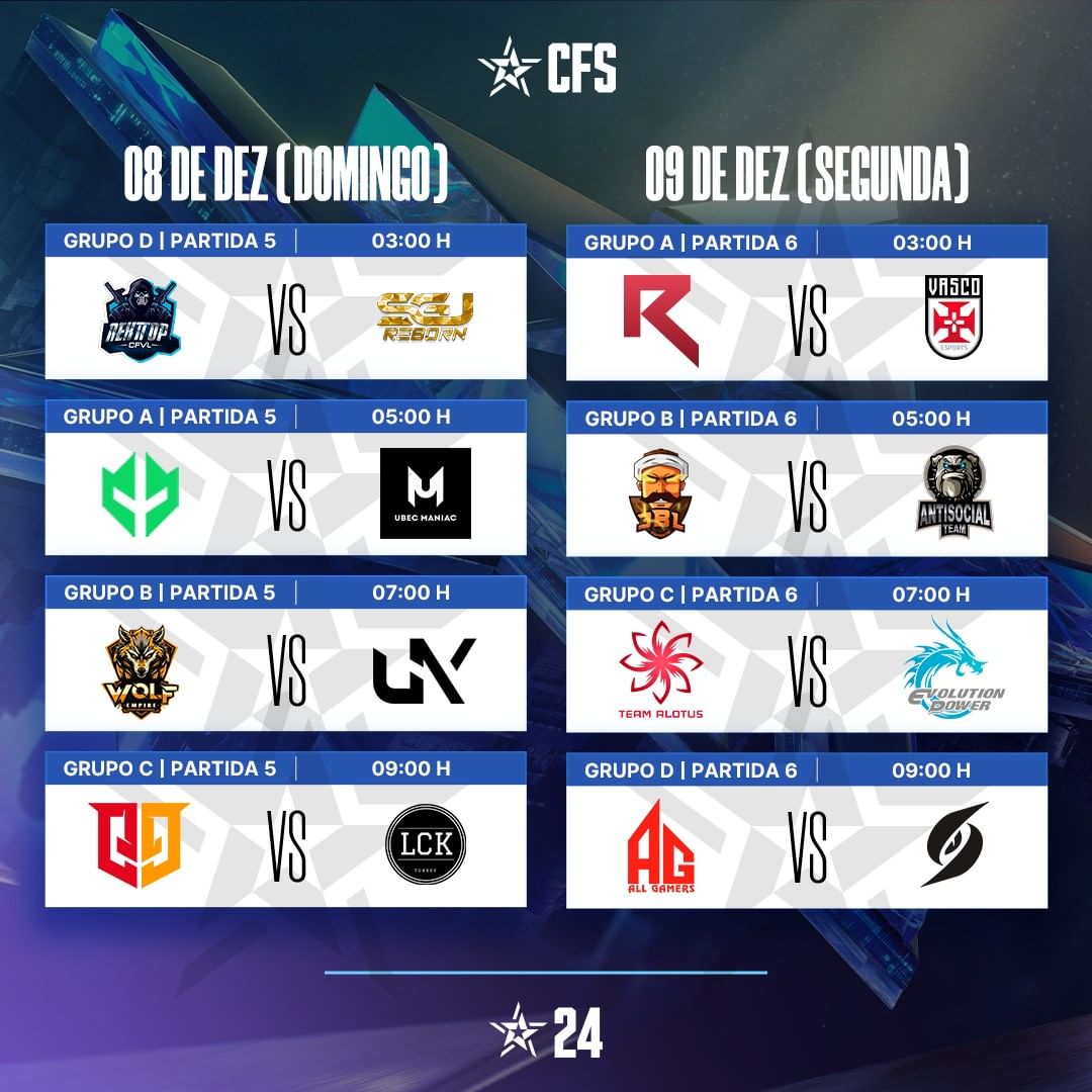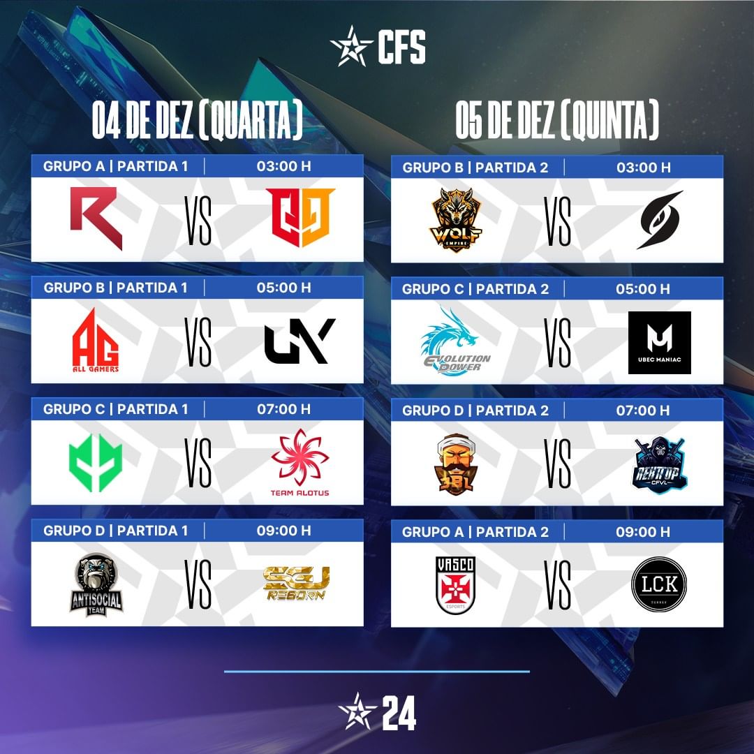 Confira a agenda de jogos da fase de grupos. Teremos a @antisocialff e @imperialesports estreando no primeiro dia, e aí qual seu palpite para os jogos dos times BR?