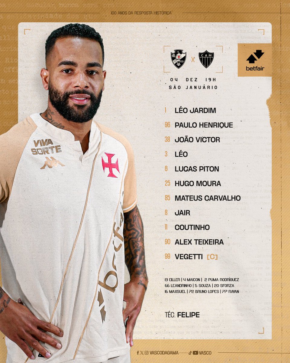 Vasco 𝘦𝘴𝘤𝘢𝘭𝘢𝘥𝘰 para enfrentar o Atlético-MG 📋💢