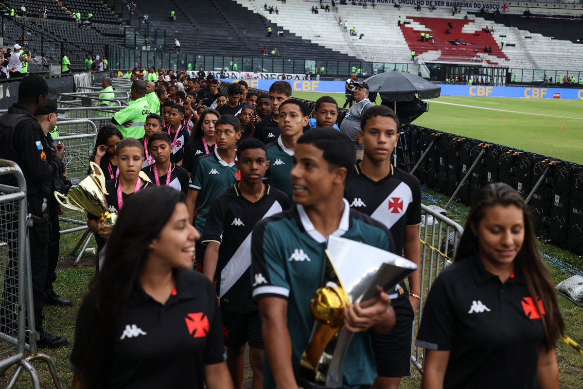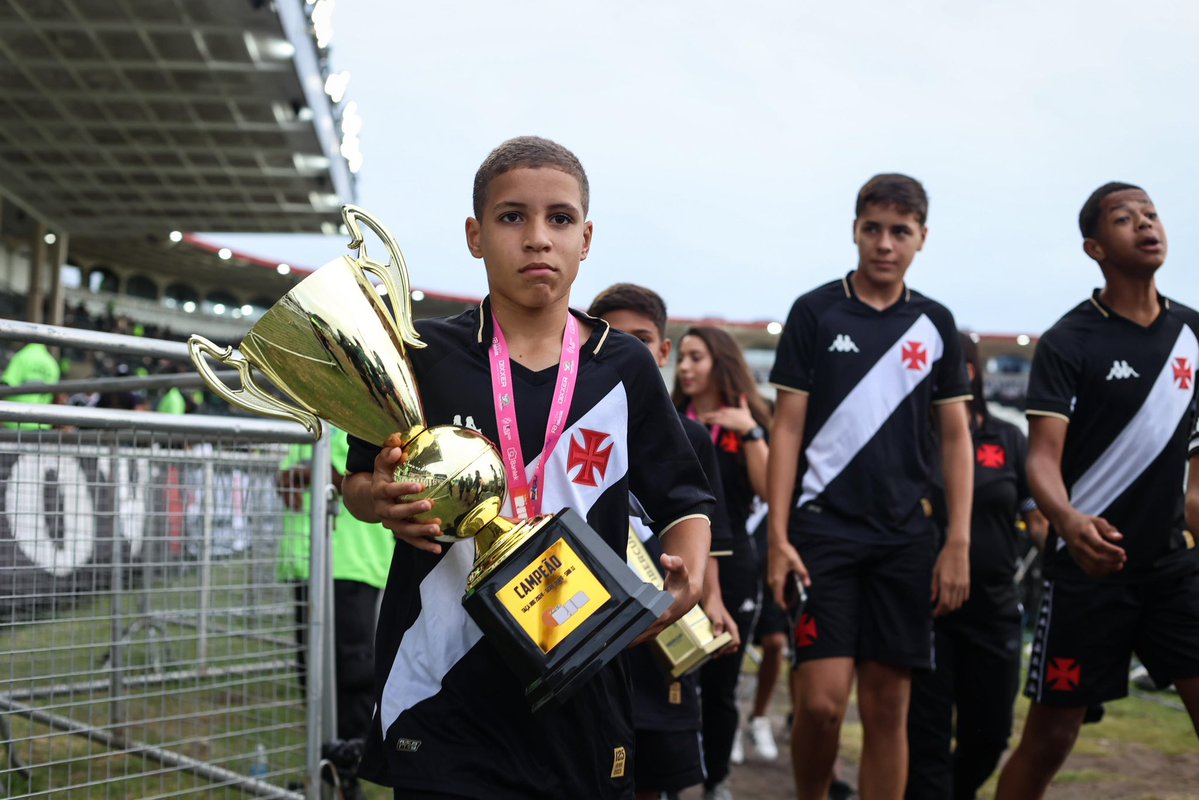 Jovens do Sub-11 e do Sub-13 do Vasco, que foram campeões no último fim de semana, deram volta olímpica em São Januário