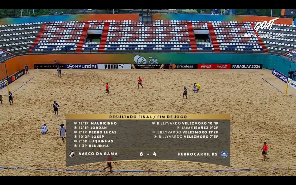 Beach Soccer: Vasco vence o Ferrocarril por 6 a 4 e se classifica para a semifinal da Libertadores