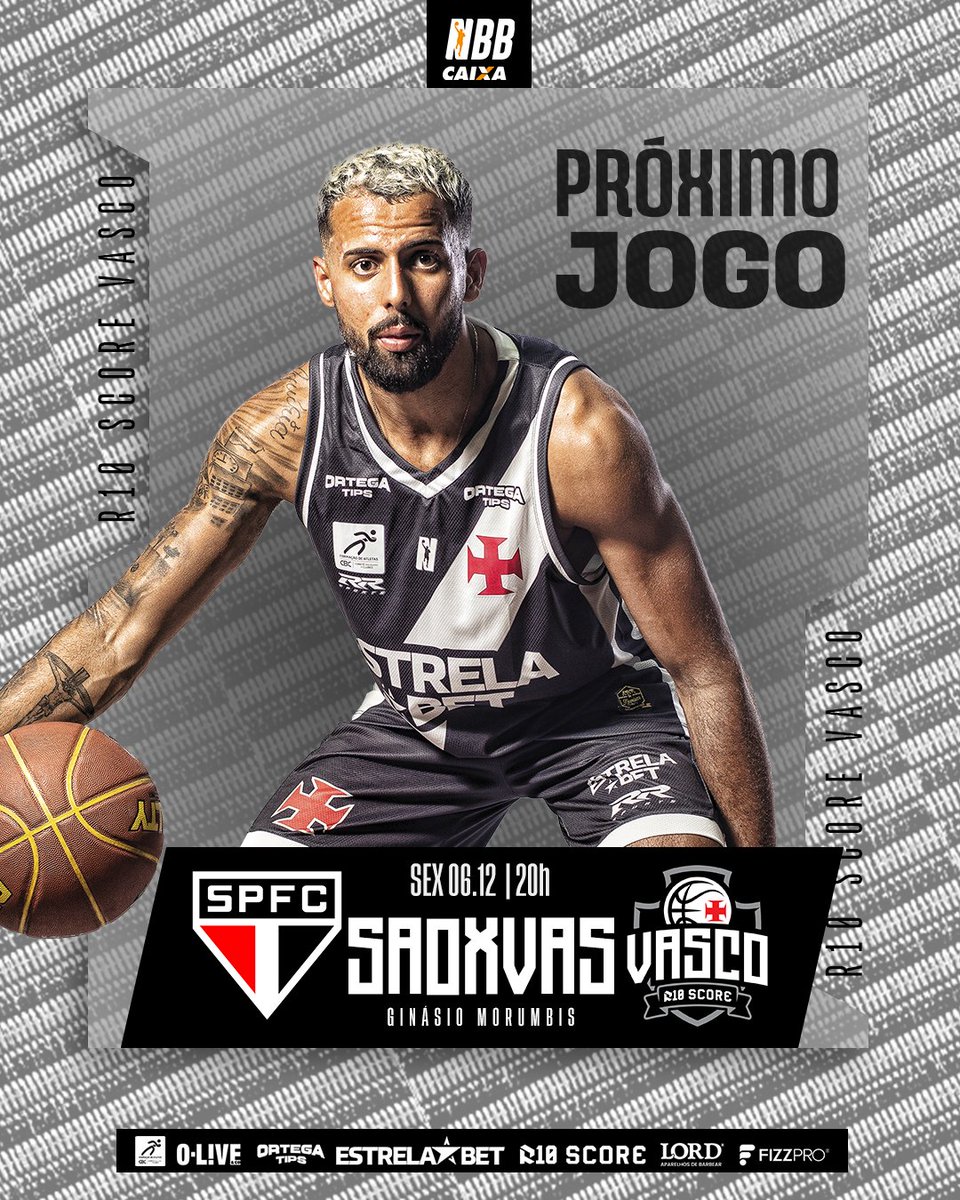 E não para, não! Para encerrar a semana com muita emoção, o R10 Score Vasco da Gama entra em quadra para enfrentar o São Paulo nesta sexta-feira, 06/12, às 20h, no Ginásio Morumbis. 🏀💢