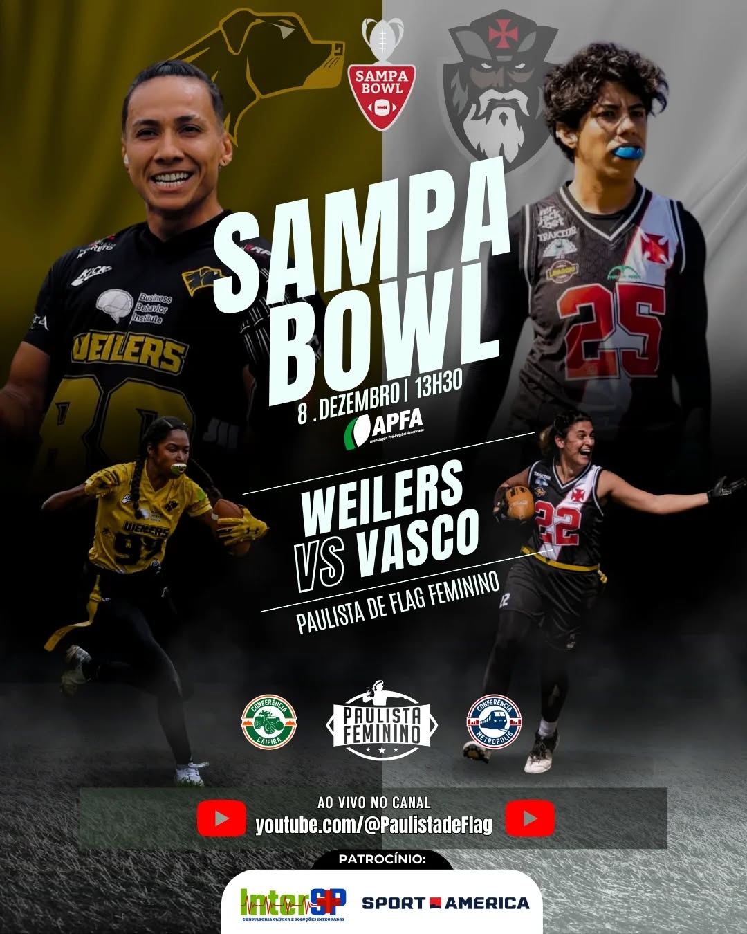 Futebol Americano Feminino: Vasco enfrenta o Weilers pelo Sampa Bowl, final do Paulista de Flag neste domingo às 13h30 com Youtube