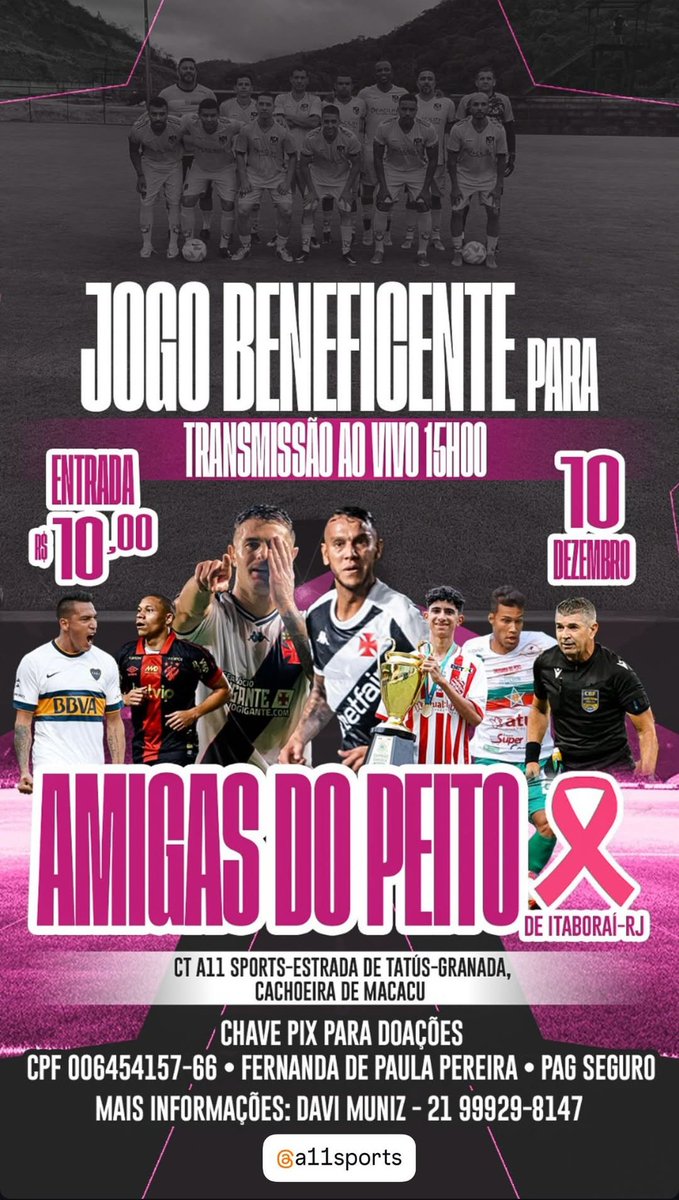 Vegetti e Souza disputarão jogo beneficente nesta 3ª-feira em Cachoeiras de Macacu