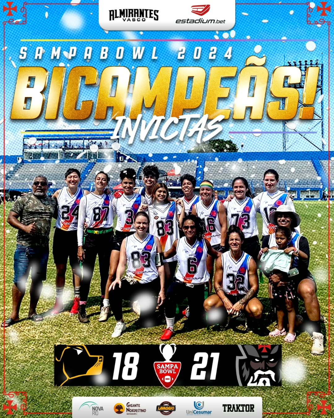 O time de Futebol Americano Feminino do Vasco se sagrou neste domingo, ao derrotar o Wailers por 21 a 18, bicampeão do Sampa Bowl, que é o nome pelo qual é conhecida a final do Campeonato Paulista da modalidade Flag Football.