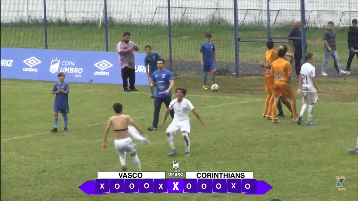 Pela final da Copa Umbro Sub-14 o Vasco da Gama foi superado nos pênaltis para o Corinthians depois do empate em 2 a 2 no tempo regulamentar. Gustavo Moura e Rodrigo Júnior marcaram os gols do Gigante, que se despede da competição com quatro vitórias, um empate e uma derrota.