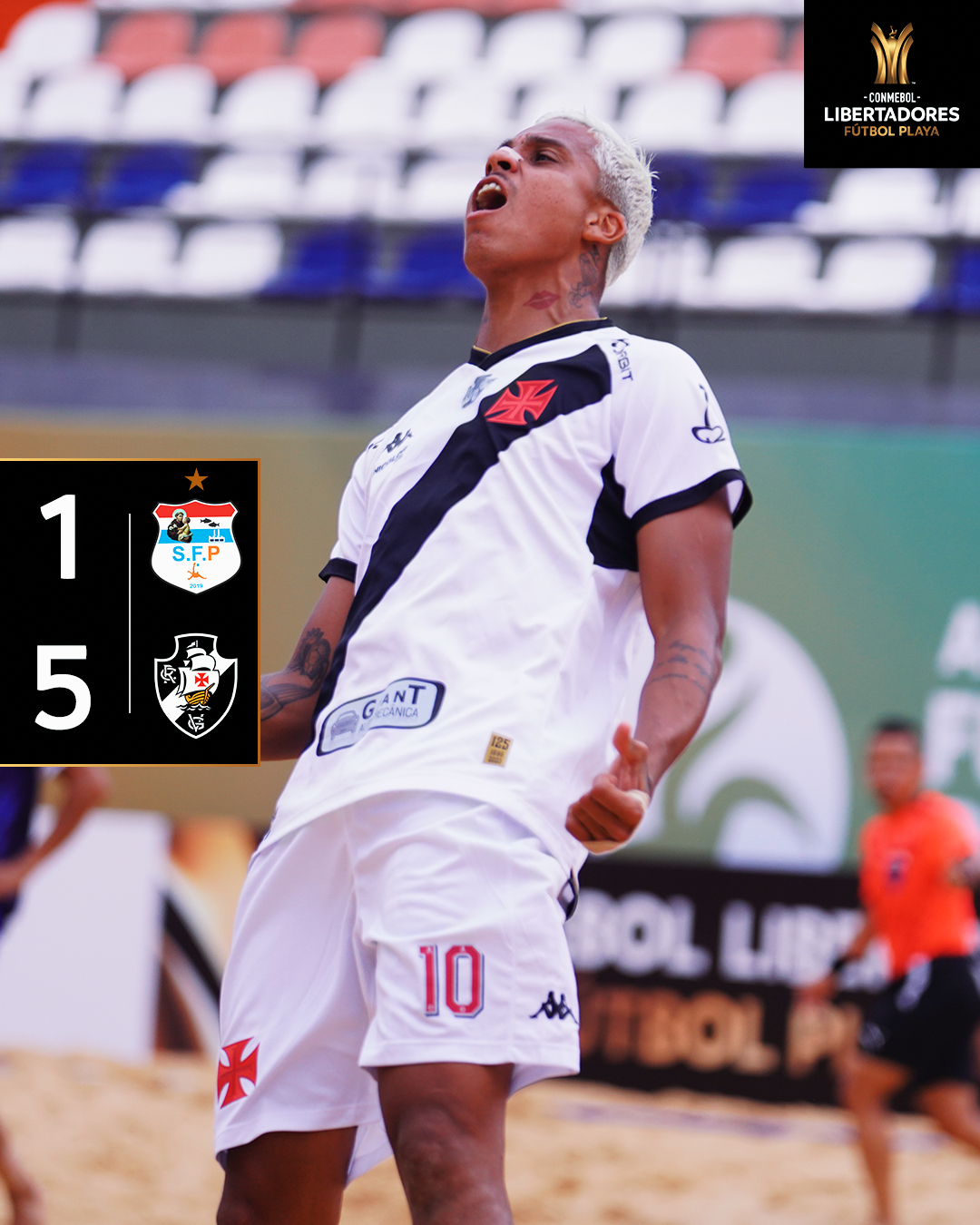 Vasco da Gama do Brasil garantiu sua vaga na final da CONMEBOL Libertadores de Beach Soccer 2024 com uma vitória de 4 a 2 sobre o Centauros nas semifinais e vai em busca do tetra.