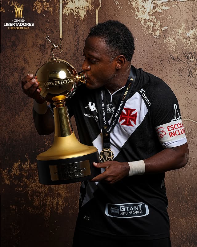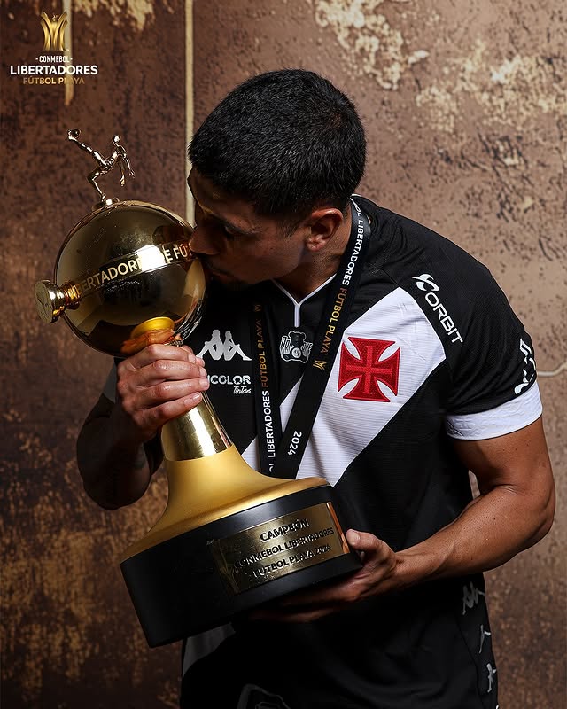 08/12/24 - Beach Soccer: Veja o momento em que os jogadores do Vasco recebem a taça da Libertadores