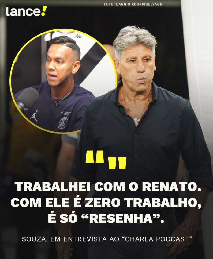 Hoje no Vasco, Souza falou em entrevista que Renato Gaúcho era 'zero trabalho'
