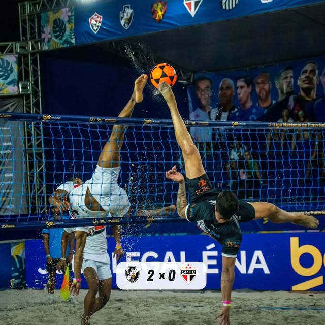 Com Dedé no lugar de Alecsandro, o Vasco derrotou o São Paulo por 2 sets a zero (parciais de 18/16 e 22/20) na noite desta 6ª-feira no Parque Olímpico da Barra pela 1ª fase da Liga Nacional de Futevôlei. Já sem chance de classificação para as semifinais, o Vasco encerra sua participação na competição neste sábado, às 22h30, no mesmo local, contra o Sport (capitaneado por Diego Souza), com transmissão pelo Youtube e pelo Sportv 2.