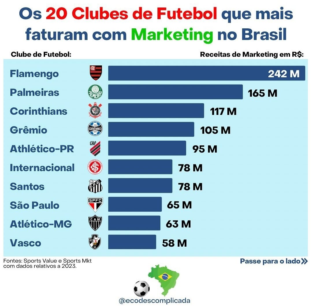 Vasco foi o 10º clube brasileiro que mais faturou com marketing em 2023: R$ 58 milhões