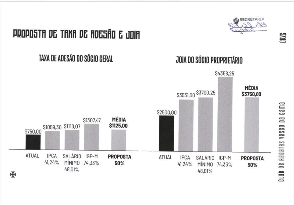 Também está previsto reajuste de 50% na aquisição de título e na taxa de adesão.