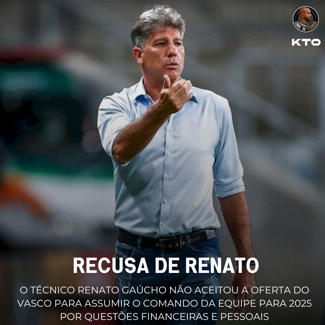 Além da parte financeira, já citada por alguns companheiros de imprensa como entrave para um desfecho positivo. Outra situação, de acordo com minha apuração, que interferiu para Renato Gaúcho aceitar a oferta do Vasco foram questões pessoais