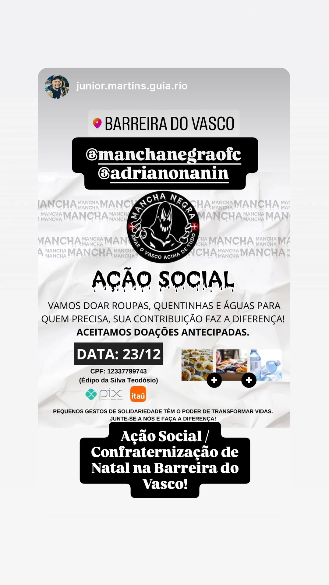 Mancha Negra promoverá ação social na Barreira do Vasco na 2ª-feira