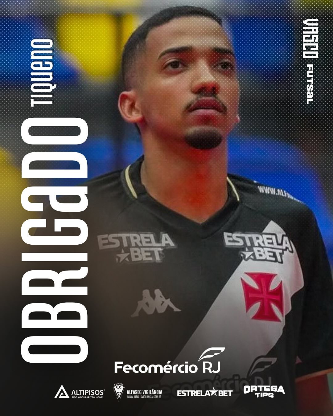 O ala Tiqueno não seguirá no Vasco Futsal em 2025. O atleta aceitou uma proposta e irá anunciar em breve o seu novo desafio.
