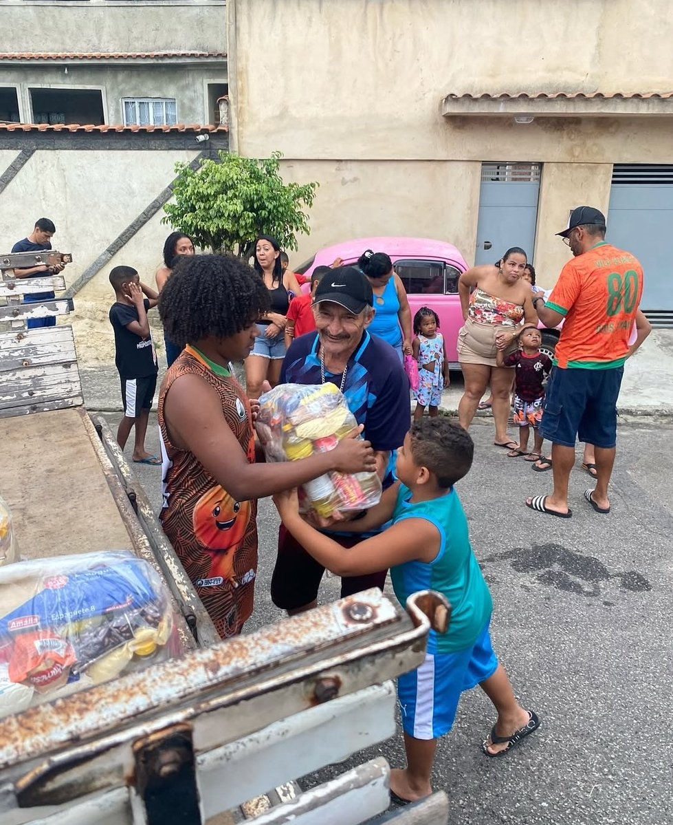 Andrey Santos fez doações de cestas básicas para moradores da Vila Aliança, em Bangu