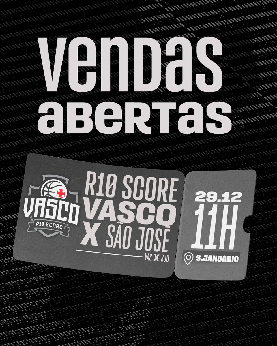 🚨 VENDAS ABERTAS, TORCIDA VASCAÍNA! Neste domingo (29/12), às 11h, o R10 Score Vasco está de volta à quadra para o início do 2º turno! ⚫⚪