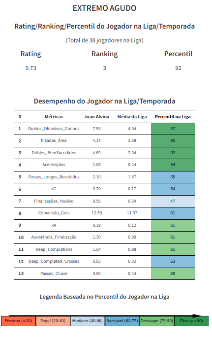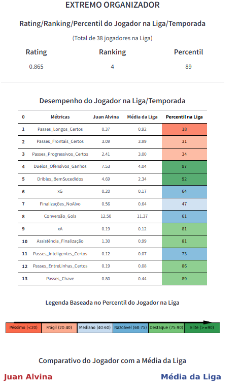 Com o auxílio do app do Américo, a gente pode ver que ele se destaca bastante na Liga Ucraniana em diversos indicadores de desempenho.