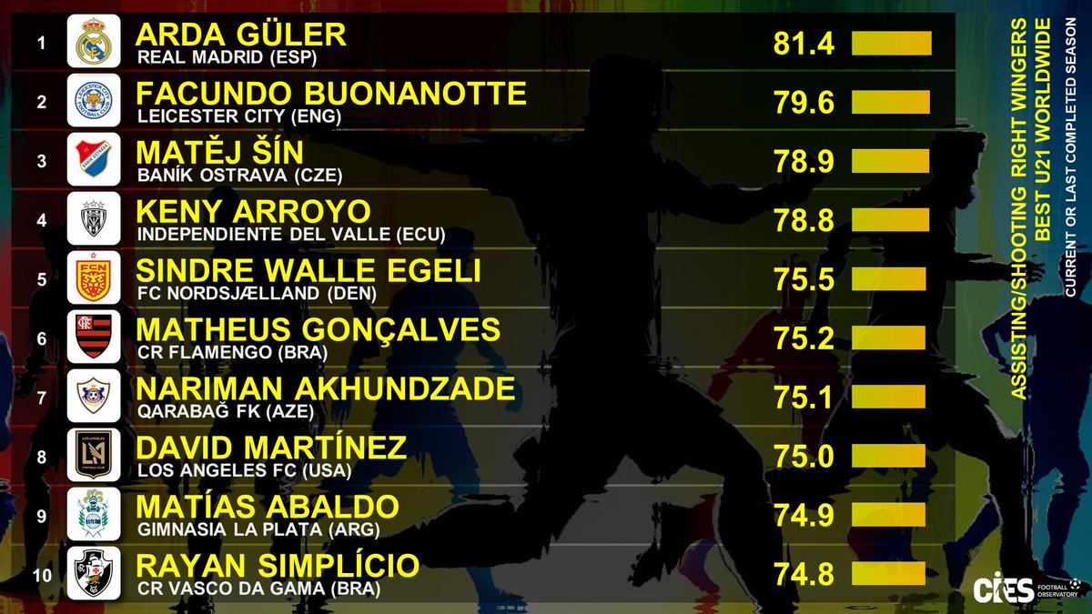 Top U2⃣1⃣ assisting/shooting right wingers 🌐 as per @CIES_Football Index 📊 powered by @Wyscout