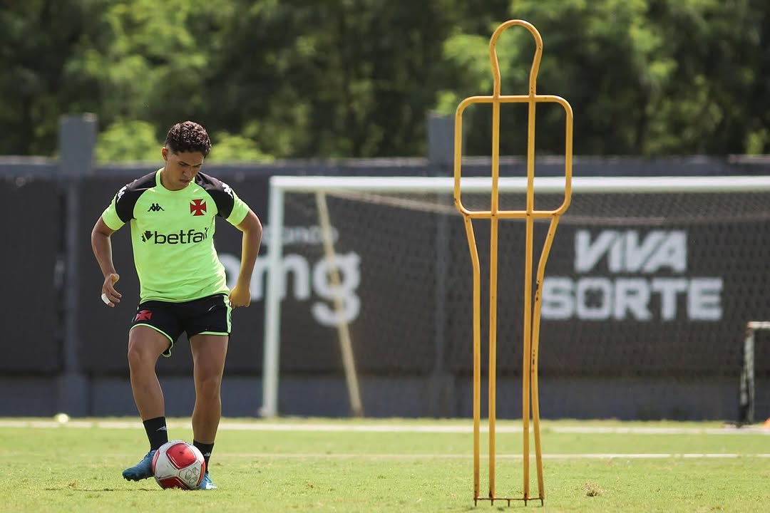 30/12/24 - Possível novo reforço do Vasco, zagueiro Lucas Freitas treinou com Puma Rodríguez e Rayan nesta 2ª-feira