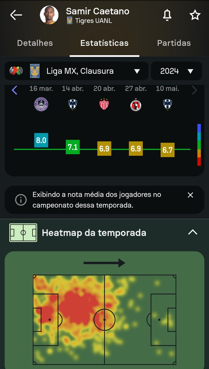 Numeros de Samir na carreira e o mapa de calor na temporada de 2023/24.. o zagueiro não joga desde junho, quando enfrentou o América pela super copa do México.. seria uma ótima opção pra jogar pela esquerda se conseguir ficar 100%