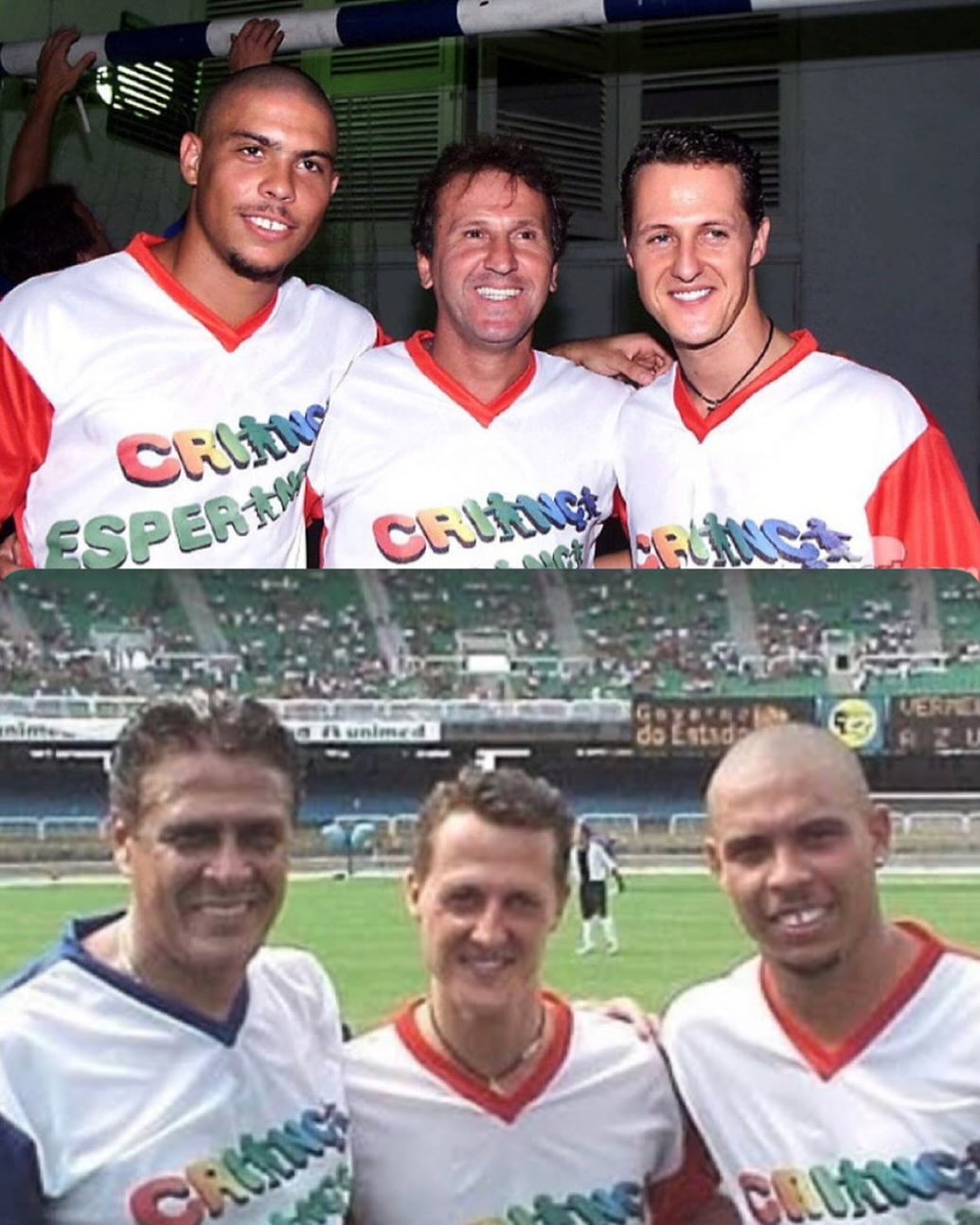 Dinamite participou de jogo beneficente em 2001 com Ronaldo, Zico e Michael Schumacher; veja foto