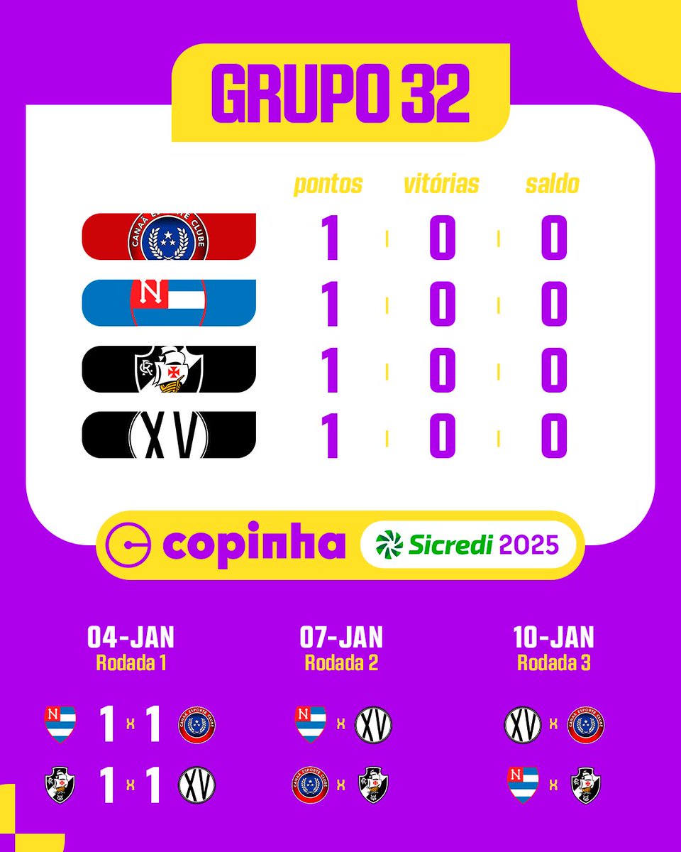 Sub-20: Nacional-SP e Canaã-DF também empatam por 1 a 1 e grupo do Vasco na Copinha está embolado