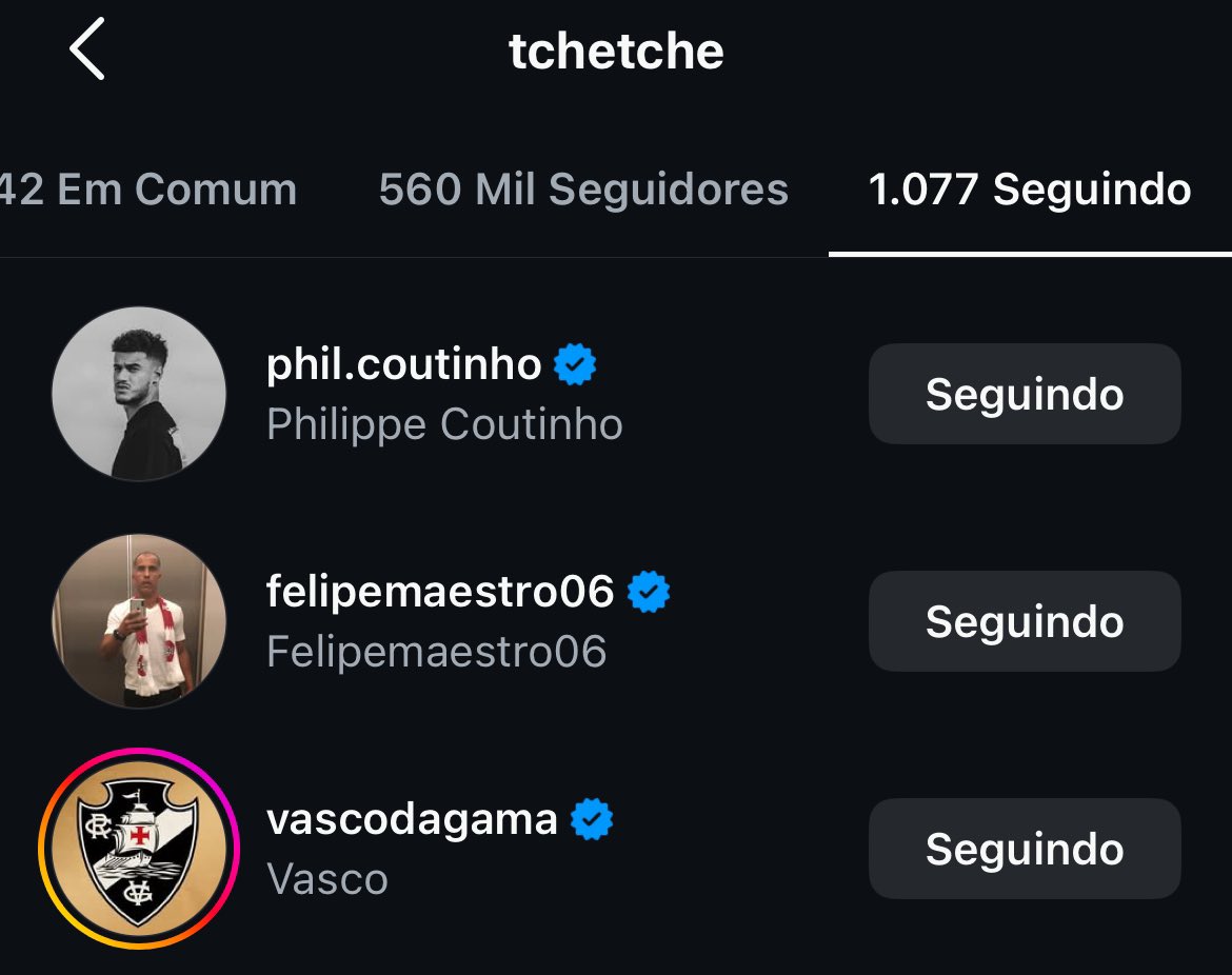Tchê Tchê já está seguindo o Vasco no Instagram e a expectativa é que seja anunciado oficialmente em breve.