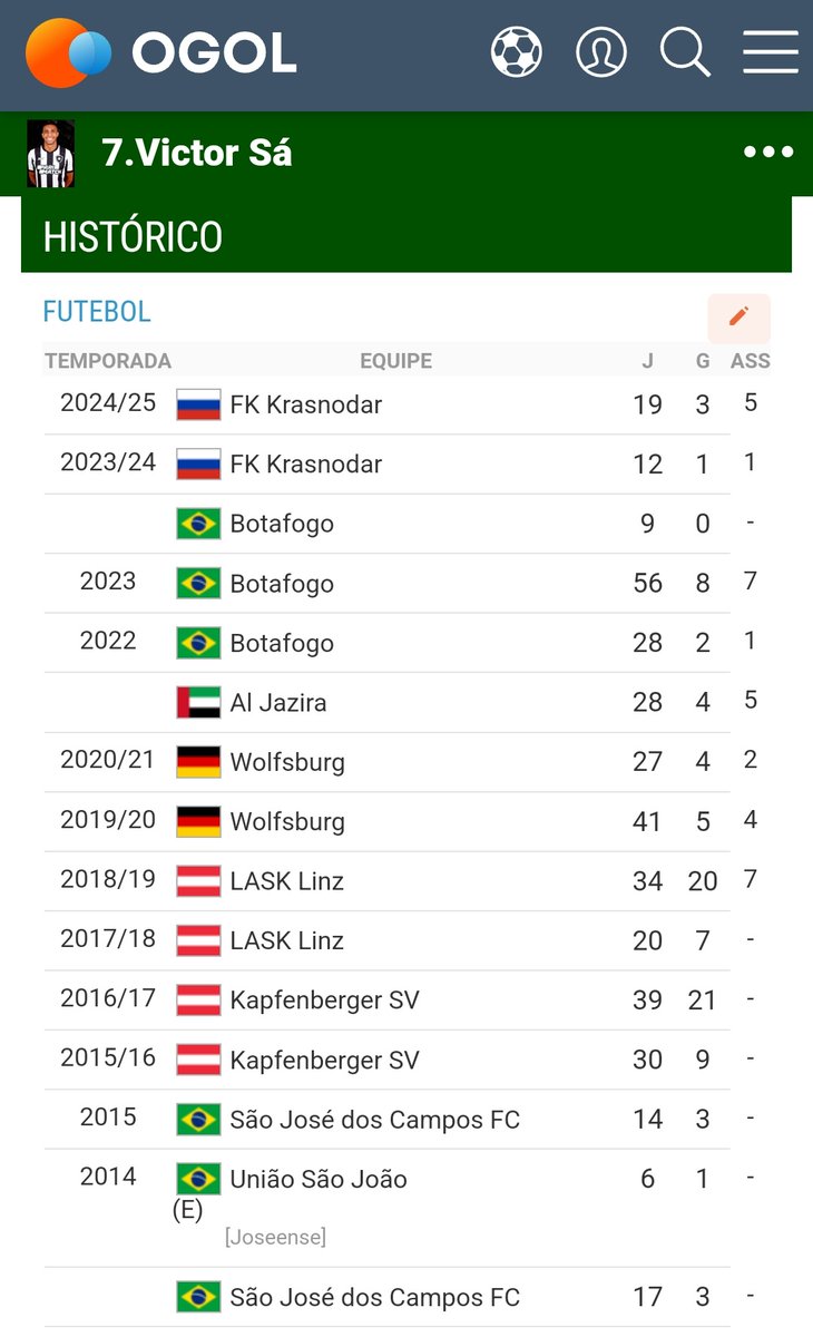 Abaixo, os números do atacante, conforme @ogolcombr.