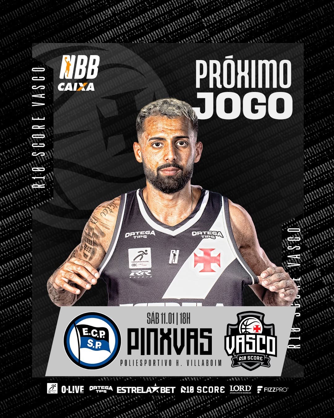 💢🏀 Hora de mais um duelo! Neste sábado, 11/01, o R10 Score Vasco enfrenta o Pinheiros, às 18h, no Ginásio Poliesportivo Henrique Villaboim, em São Paulo! ⚫⚪