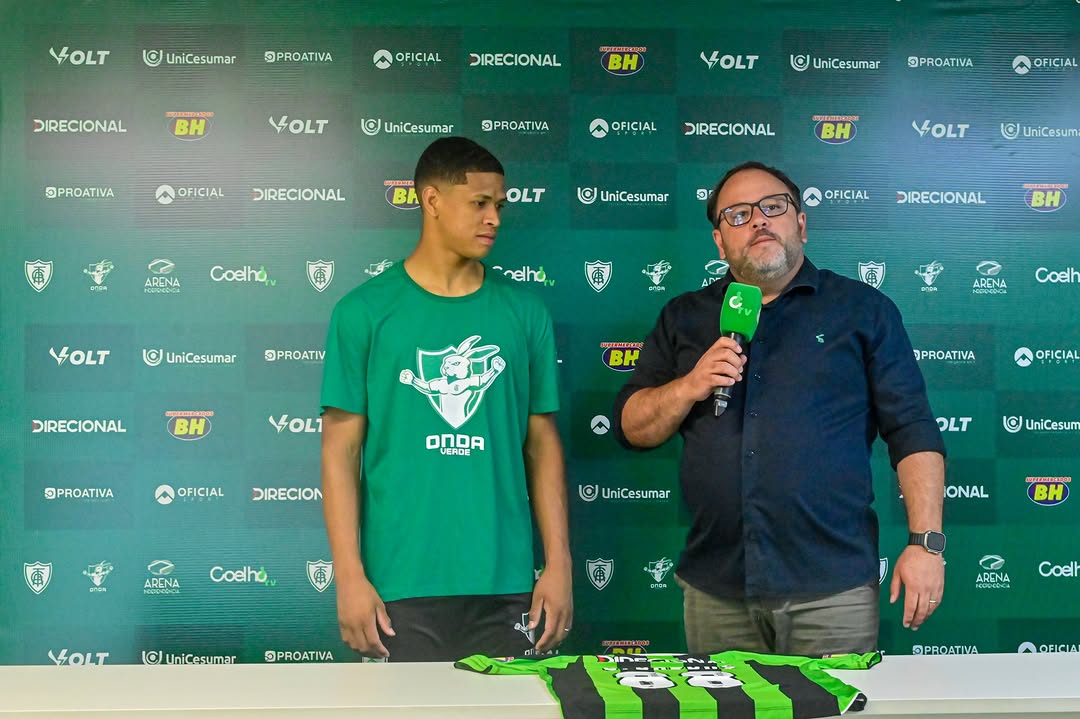 Emprestados pelo Vasco, Figueiredo e Barros são apresentados como novos reforços do América-MG