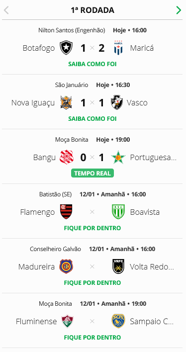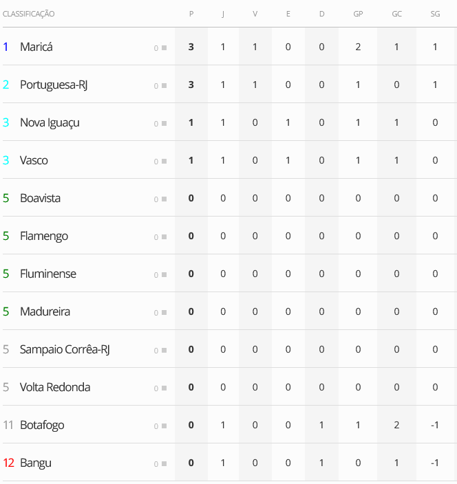 Veja a classificação da Taça GB após os jogos de sábado da 1ª rodada; Vasco está em 3º, empatado com o Nova Iguaçu