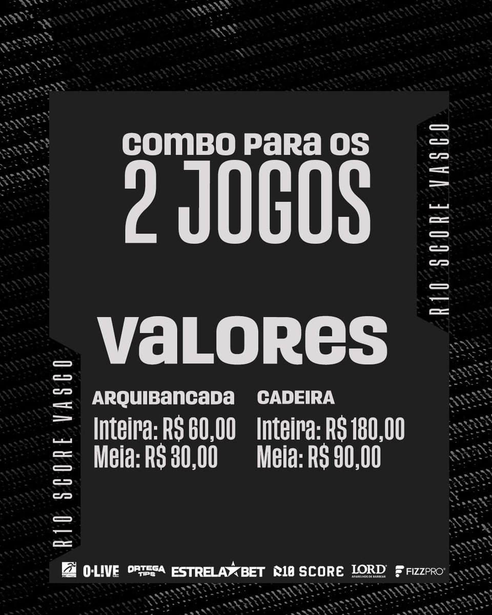 🎟️ Comprando ingresso para o jogo de segunda, você tem 50% de desconto no de sábado. Não dá pra perder!