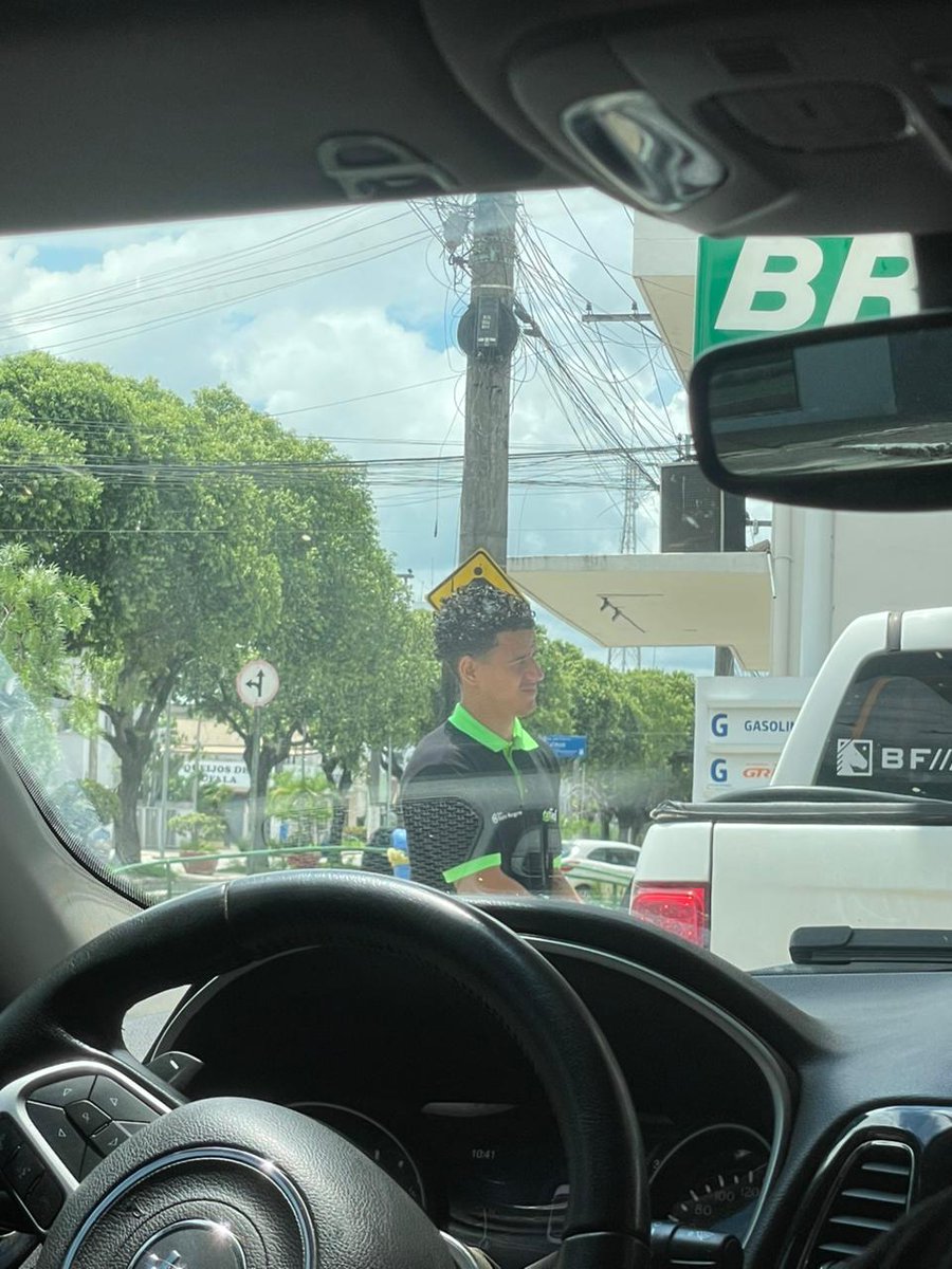 Vim aqui abastecer... Do nada aparece o @Phil_Coutinho fazendo um bico de frentista para levantar uma grana, nas férias.