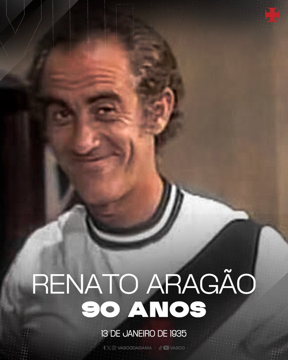 Um dos maiores humoristas do Brasil, o vascaíno Renato Aragão comemora 90 anos nesta data.