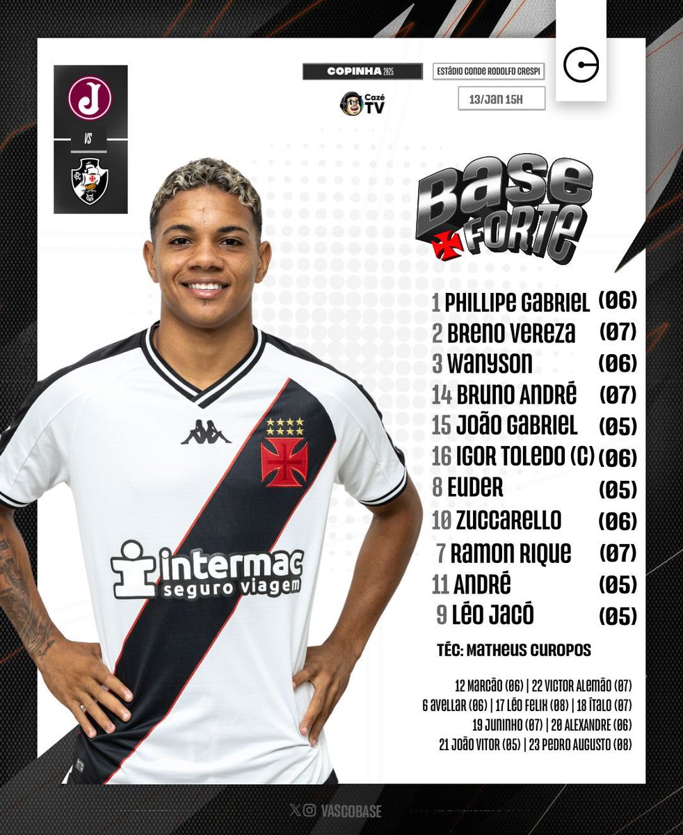 A escalação do Vasco para o duelo na @copinha 📋💢