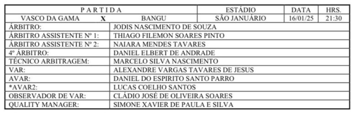 FERJ acaba de divulgar a escala de arbitragem para a 2ª rodada do Campeonato Carioca. Para o jogo entre Vasco e Bangu, o árbitro escolhido foi Jodis Nascimento de Souza. Confira: