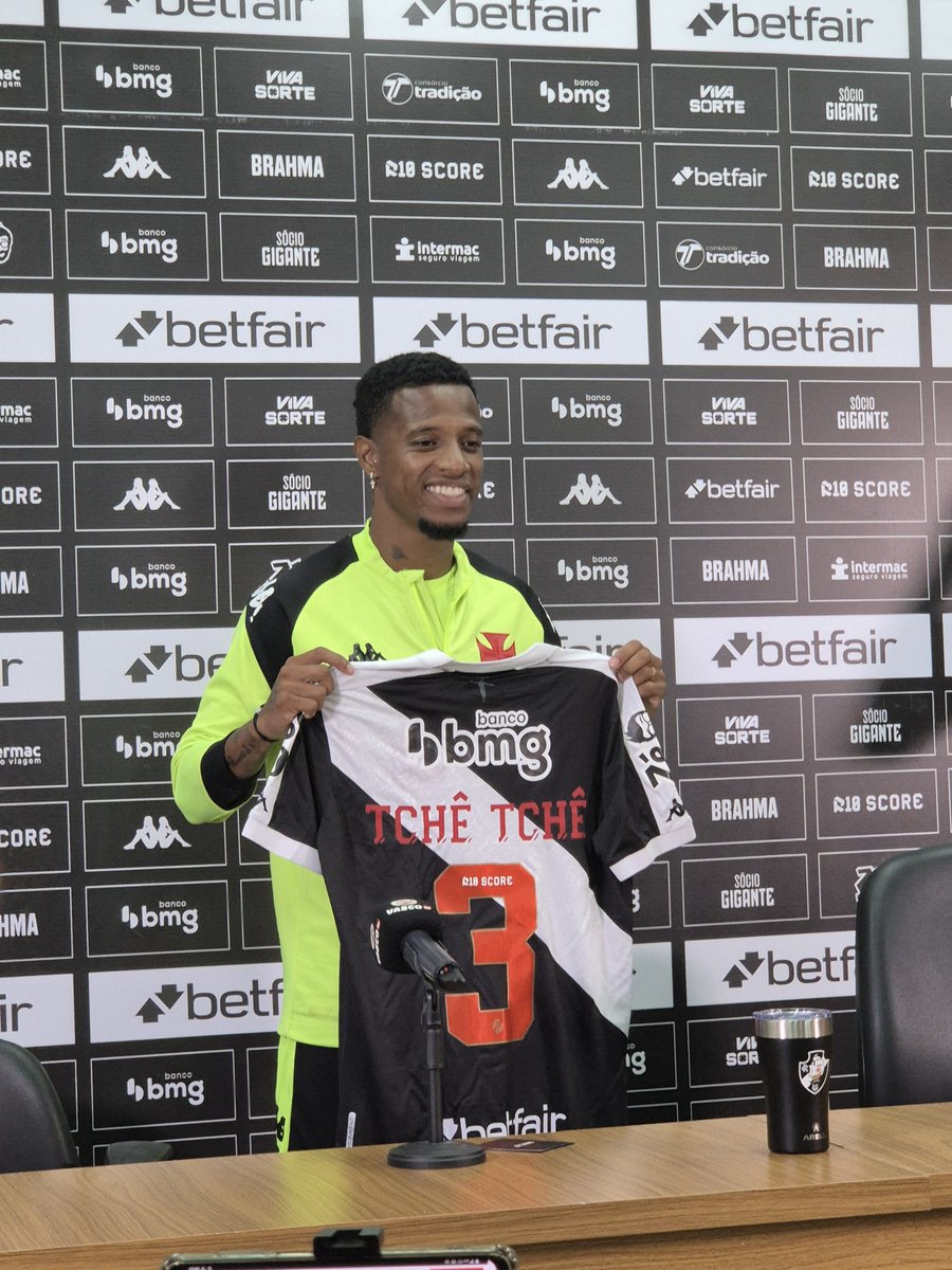 Tchê Tchê apresentado com a camisa 3. O meia explicou o motivo da escolha do número: