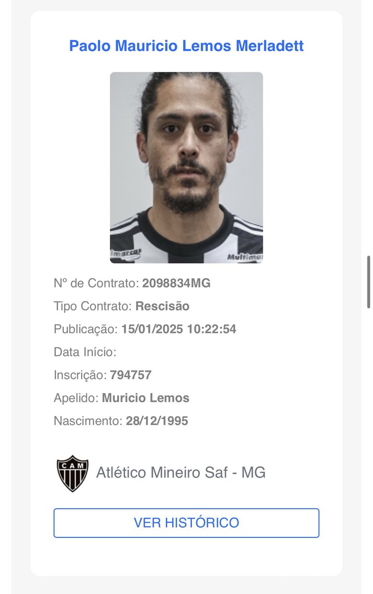A rescisão do zagueiro Maurício Lemos com o Atlético-MG foi publicada no BID da CBF.