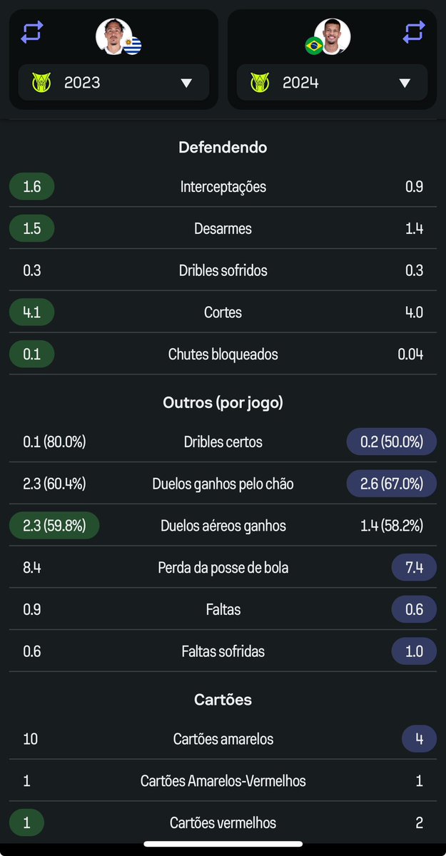 Recém anunciado pelo Vasco da Gama, Maurício Lemos chega para ser titular nessa temporada. Abaixo comparação básica da sua temporada de 2023 comparadas com nossos zagueiros + 2024 do JV