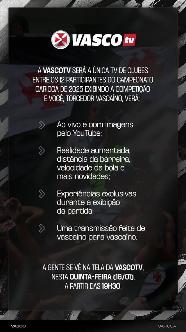 16/01/25 - Confira a arte de divulgação da partida Vasco x Bangu