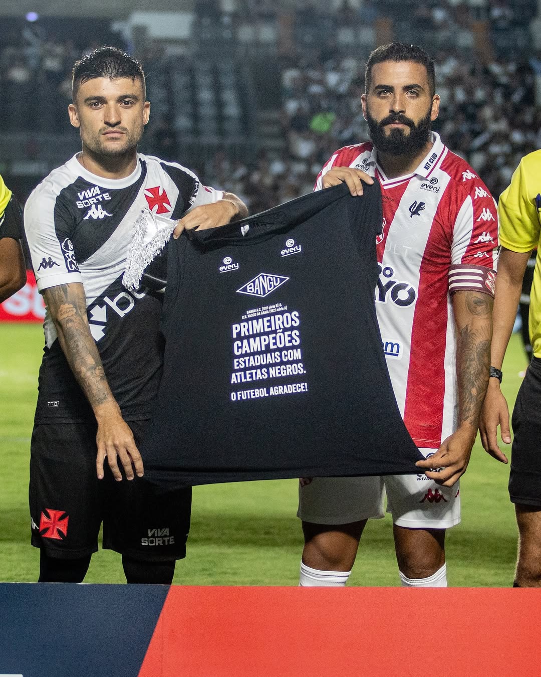 Vasco e Bangu entraram em campo com camisa 'primeiros campeões estaduais com atletas negros'