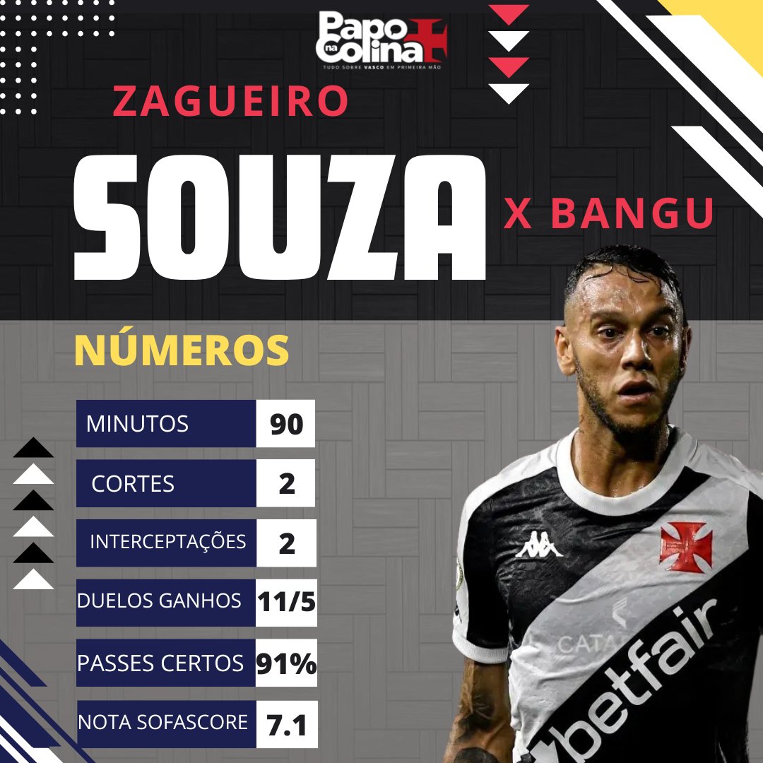 📊 No SofaScore, Souza teve uma performance sólida, ficando abaixo apenas de Paulinho, o grande destaque da partida. Entre os 11 titulares, o cria do Vasco foi o terceiro melhor em nota! 🔥👏