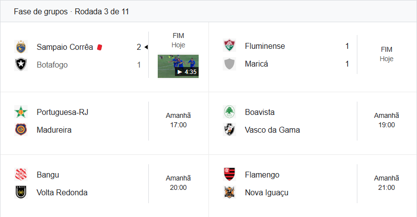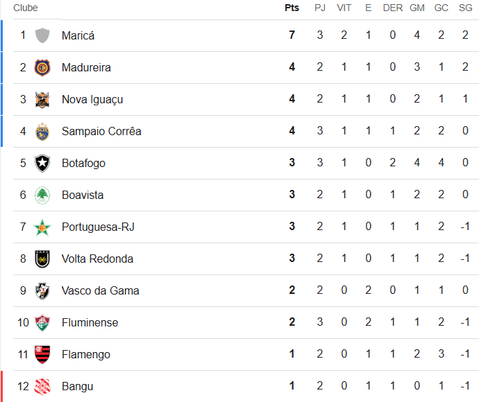 Confira a classificação da Taça Guanabara após dos jogos de sábado da 3ª rodada. O Vasco enfrenta o Boavista neste domingo às 19h fora de casa.