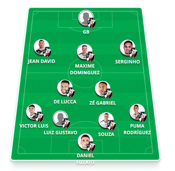 Provável escalação do Vasco: Fuzato, Puma Rodríguez (PH), Souza, Luiz Gustavo, Victor Luís, Zé Gabriel, De Lucca, Maxime Domínguez (JP); Serginho, Jean David (Bruno Lopes) e GB