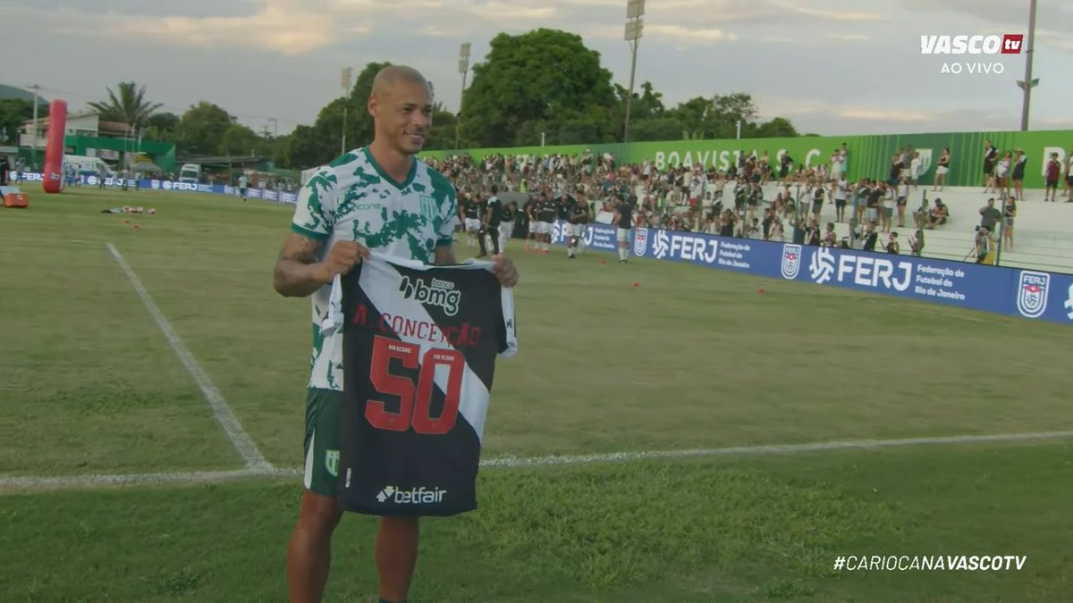 💢| Hoje no Boavista, o ex zagueiro do Vasco Anderson Conceição recebeu uma camisa em homenagem aos 50 jogos que fez pelo Vasco